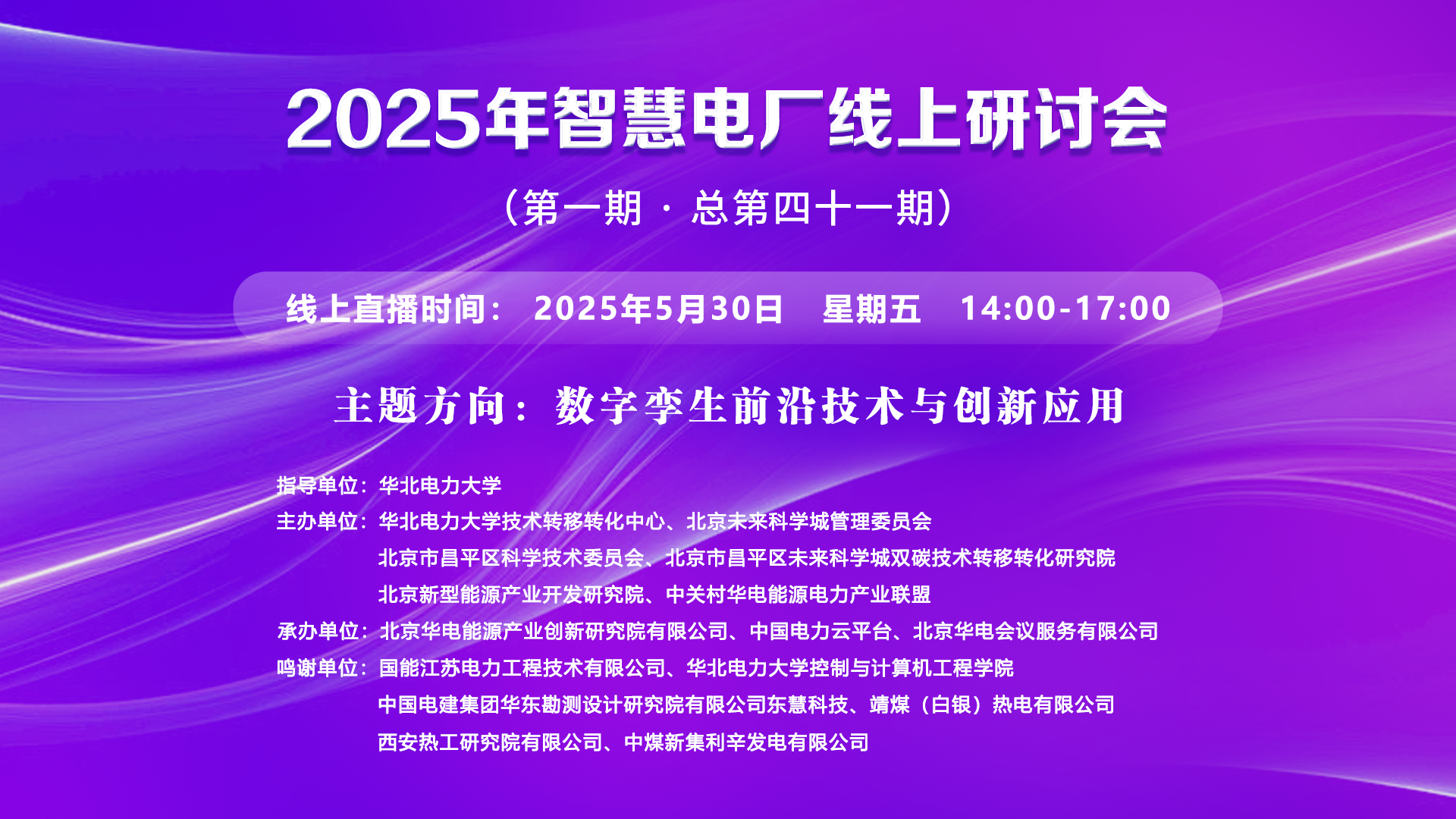 2025年智慧电厂线上研讨会(第一期·总第四十一期)一、讲座主题:数字孪生前沿技术与创新应用 二、讲座时间:2025年5月30日 星期五 14:00-17:00 三、讲座地点:线上直播:https://t19c5.xetlk.com/sl/4fX1M3(联系人李老师 18911662193) 四、主讲人信息: (一)主讲人:朱威 1.主讲...主讲人:朱威、胡阳、章琛、卢海金、王军民、代涛时间:2025-05-30 14:00地点:线上讲座 -