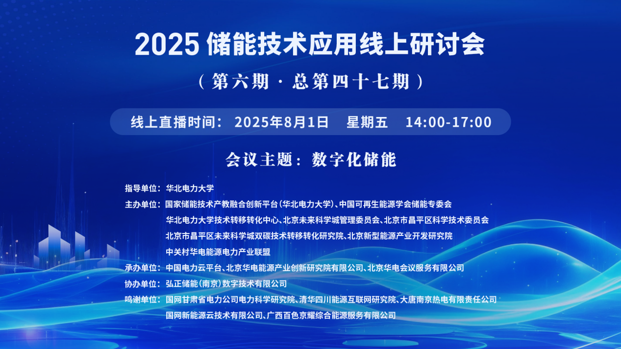 2025年储能技术应用线上研讨会(第六期·总第四十七期)【讲座主题】数字化储能 【讲座时间】8月1 日 星期五 14:00-17:00 【讲座地点】https://t19c5.hk.xet.citv.cn/sl/3Ewoec 王航杰15321299518 1.【主讲人】牛甄 国网甘肃省电力公司电力科学研究院电力系统稳定分析专责 ...主讲人:牛甄、洪嘉、梁惠施、王洪万、于九洲、林小强、时间:2025-08-01 14:00地点:线上讲座 -