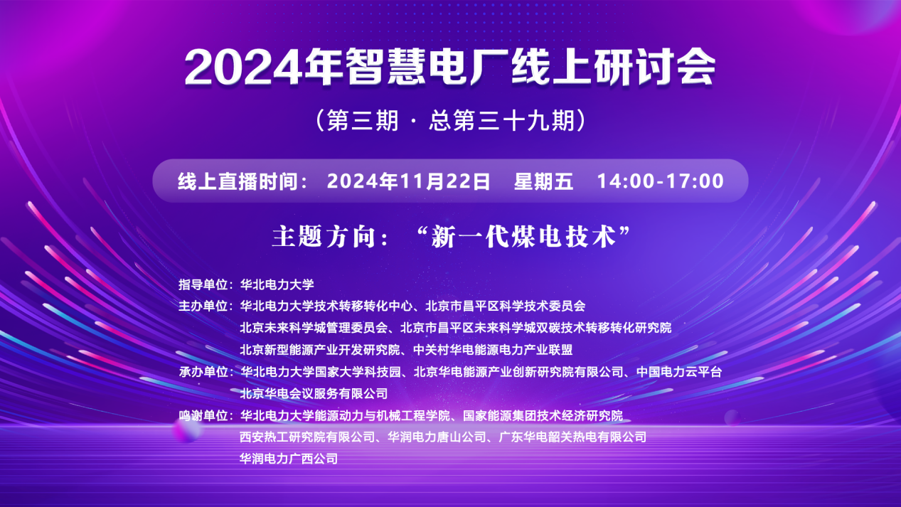 2024年智慧电厂线上研讨会(第三期·总第三十九期)【讲座时间】2024年11月22日 【讲座地点】https://wlwth.xetlk.com/sl/uYnzp 联系人:姜雯 13331120514 【主讲人】 1、庞力平 性爱网能源动力与机械工程学院教授 2、黄增袖 华润电力广西公司设备管理部锅炉主管 3、许朋江 西安热工...主讲人:庞力平、黄增袖、许朋江、张 震、孙 鹏、姜大霖时间:2024-11-22 14:00地点:线上讲座 -
