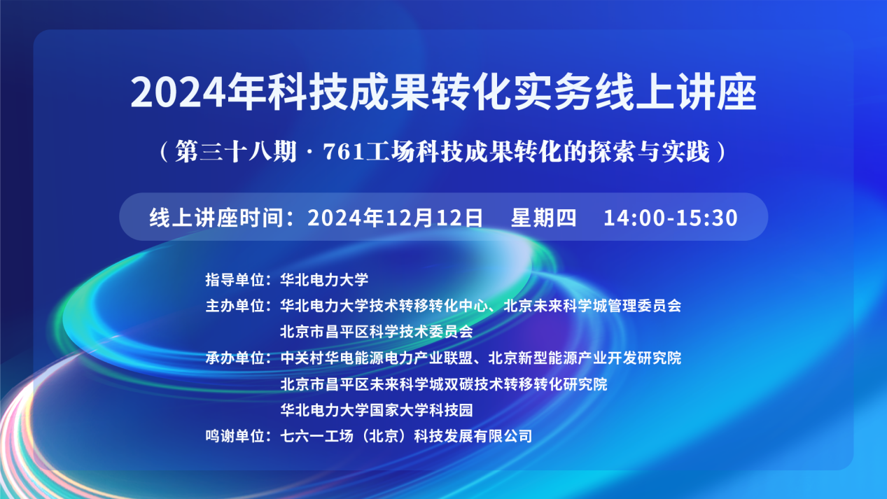 2024年科技成果转化实务线上讲座(第三十八期)【讲座主题】761工场科技成果转化的探索与实践 【讲座时间】12月12日 【讲座地点】https://wlwth.xetlk.com/sl/4hxA6S 联系人:吴燃 17310277950 【主讲人】 夏文欢 七六一工场(北京)科技发展有限公司总经理 【主讲人简介】 夏文欢,北京电子控股7...主讲人:夏文欢时间:2024-12-12 14:00地点:线上讲座 -
